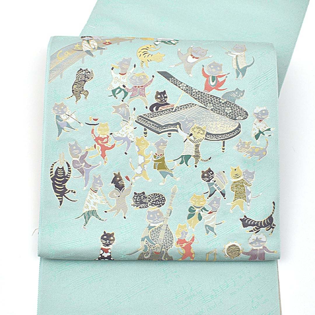 [名古屋帯]西陣織 西陣まいづる『Shall We Dance』 猫ちゃんのダンスパーティー 別注織 九寸帯 正絹 日本製(商品番号:20204)