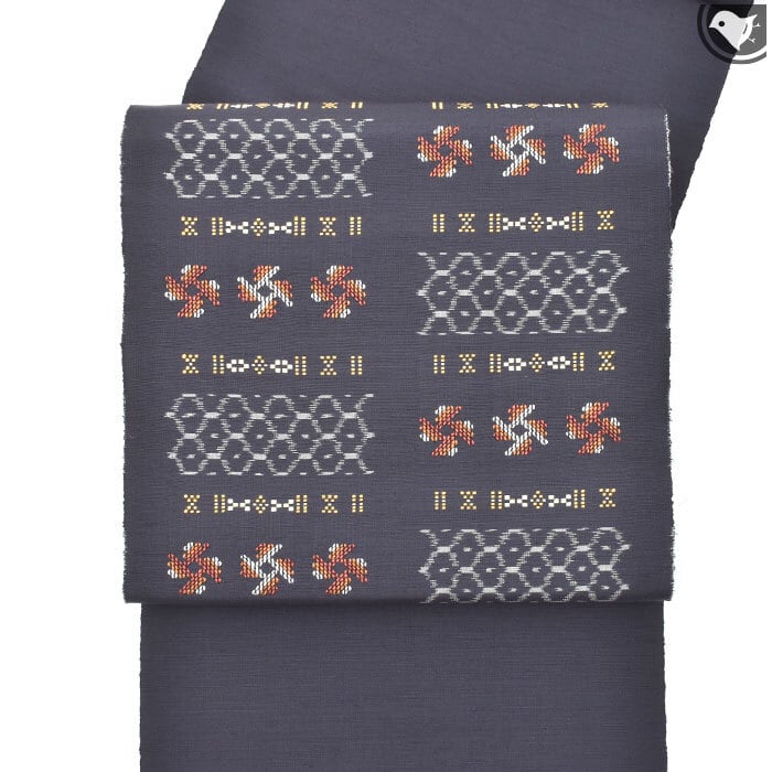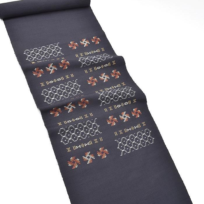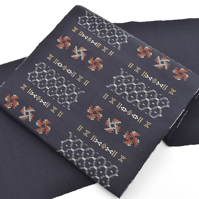 [名古屋帯]本場琉球 南風原花織 伝統工芸士 野原俊雄 作 手織り 絣 九寸帯 正絹 日本製(商品番号:21056) お仕立て代込み!送料無料!