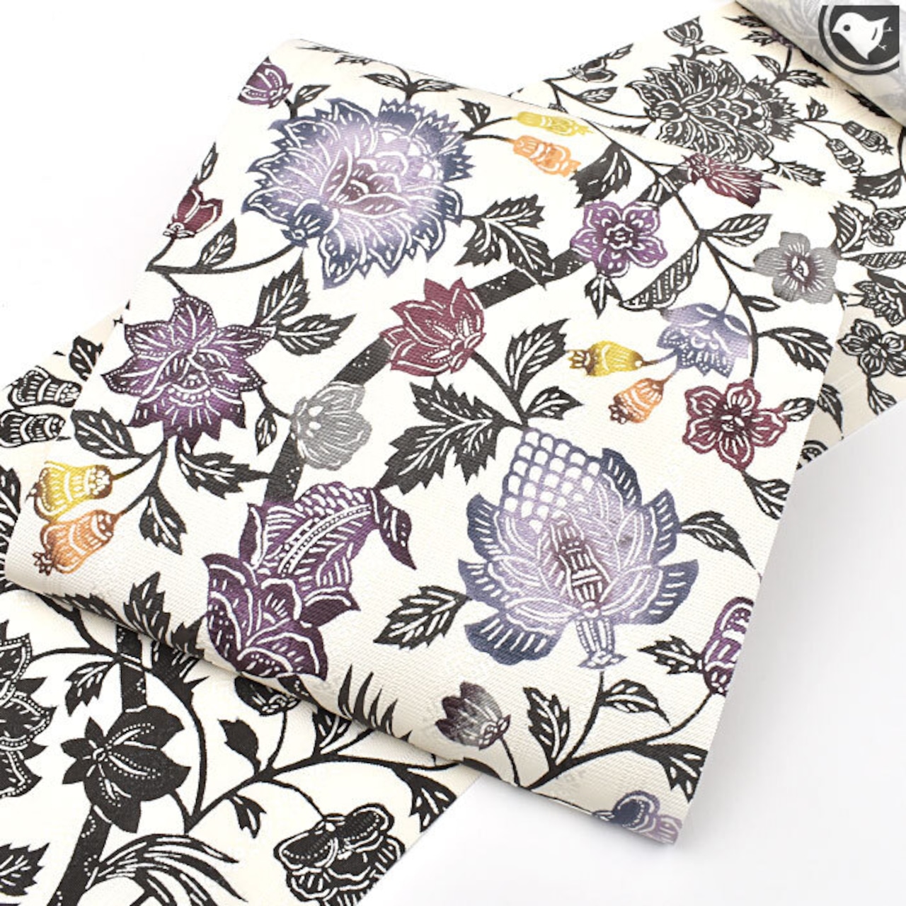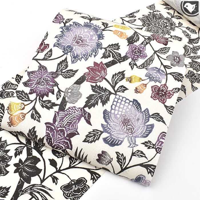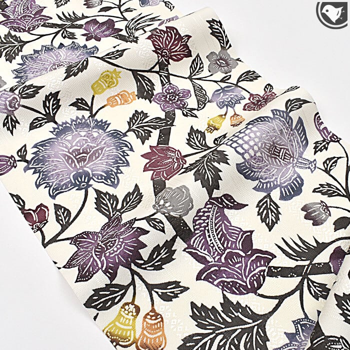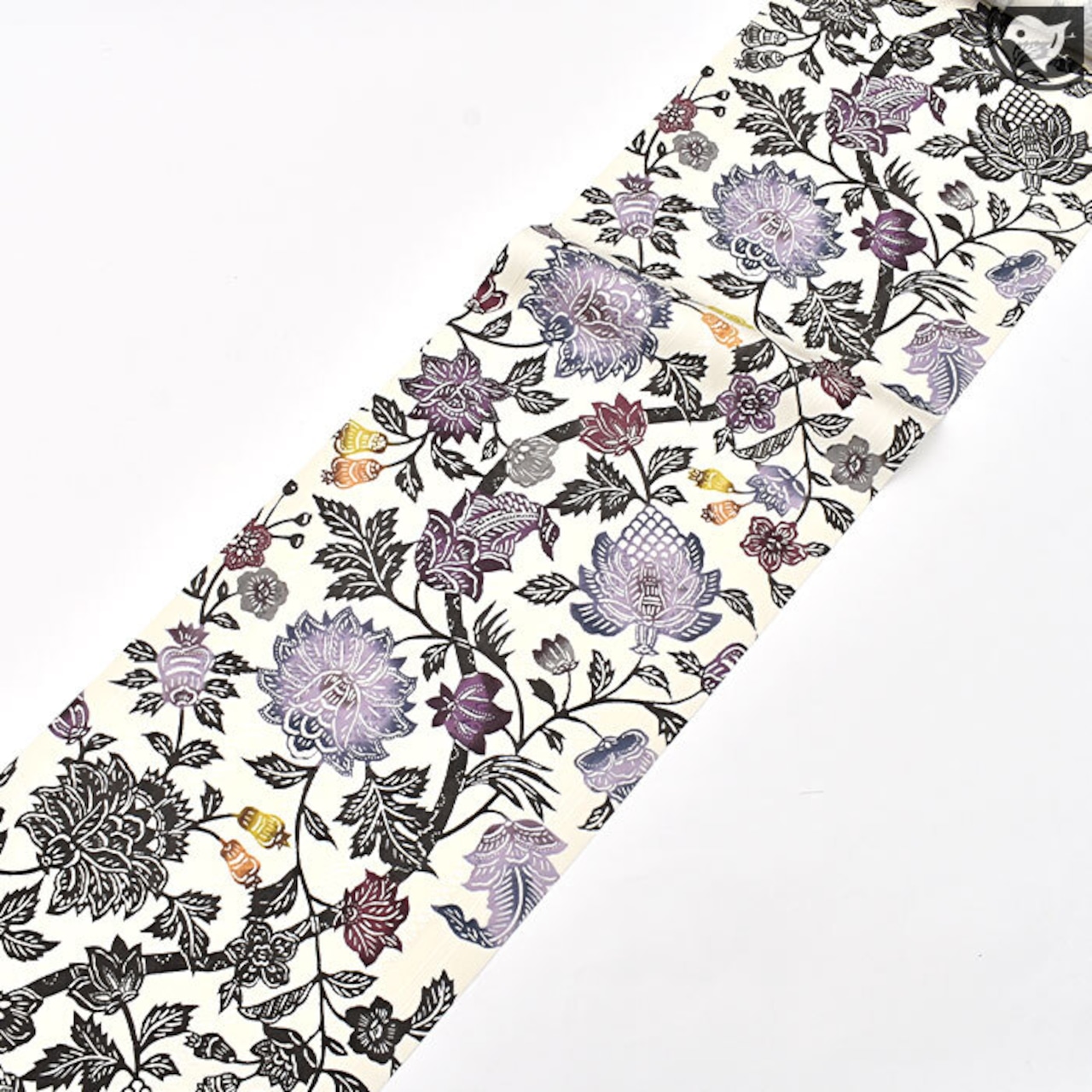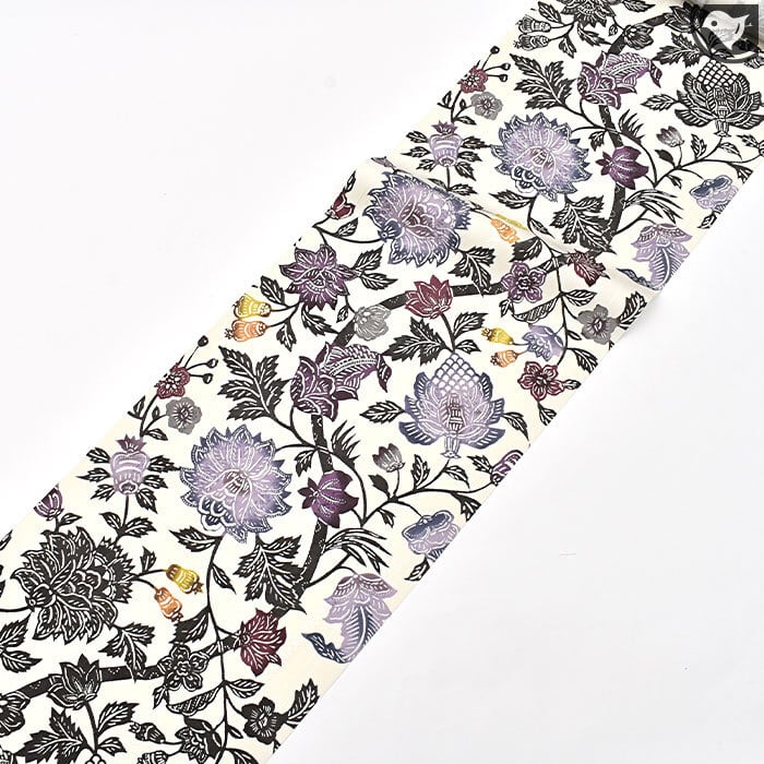 [名古屋帯]博多織 老舗 あやせ染芸 鈴木 康祐 作 東京紅型染め更紗 八寸帯 正絹 日本製(商品番号:20047)