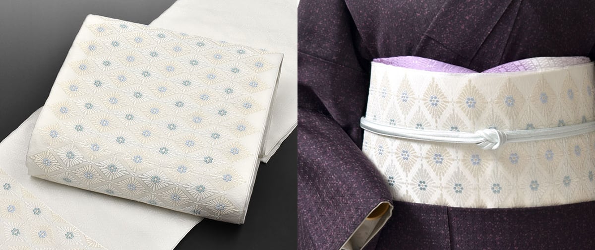 ※お電話でのご注文も大歓迎です! お気軽にお問い合わせくださいね ⇒ 0120-644-293(フリーダイヤル) ------------------------- 【商品について】 ・名古屋帯・お太鼓柄模様・素材:絹 ・サイズ:幅 約 31cm 長さ 約370cm 【合わせるお着物】付け下げ・無地・小紋・御召 【場面】 セミフォーマル~カジュアル 【季節】 春・秋・冬 【商品番号】 22122 さぁーー唐織のお話を 暑苦しく?しましょ~ 西陣織 唐織 名門 別注織 河合美術織物 名品格子取菊菱文 九寸 名古屋帯 ご紹介! 爽やかでしょ---♪ 春に締める帯として 映える配色に “小付き”と呼ばれる小さな柄行! 唐織で小さな柄、小付きは珍しく 大きな柄よりも小さな柄の方が お好きな方にも多くおられ そんな方に向けて仕入れてきた 春コーデを必ずステキにしてくれる 1本と宣言させて頂きます! しかも!これが・・袋帯の表情を持ちながら 名古屋帯!というのが魅力的で 袋帯を締めるのが年々、しんどくなった方で でも!袋帯の表情を持つ帯が欲しい! と思われている方にも 注目いただきたい1本! 袋帯の機で、名古屋帯を織ることはできず わざわざこの唐織の帯だけの機を作り 織り上げた帯だからこそ 世の中に全く出回らない帯となり 手間暇がとてもかかる本唐織の帯は 織り上がる数量が極端に少なく 出来上がっても、関東のごく一部の 高級呉服店にしか並ばない、、 河合美術織物さんが自社で 作り上げた図案は 機屋さんにとって宝であり! ただ柄と色を考えるのでなく どう織るか?を設計する“紋意匠”が 機屋さんにとっては重要であり! 紋意匠 次第で、帯は全く別物になるほど そして!現代に輝く唐織に進化したことが コチラの帯の魅力となり こちらを作り上げた 河合美術織物さんの「帯との向き合い方」が 形となった帯なのです♪♪ 帯地のお話・・・ 唐織は太い糸を使用しますので 帯地は薄い生地でないと 太い糸を正常に織る事ができず、、 その為、本物の唐織の帯地には 生糸(きいと)を使用するのですが 生糸とは蚕の繭から最初の方にでる 極細い糸で、全体の約10%しか採取できず 精錬される前の糸のまま使用され 糸自体は細いのですが とても丈夫で、唐織の帯地として 最適なのです! ちなみに、、本当に質の良い 唐織の帯かどうか?は 帯地を触り、薄く少しザラついた質感であれば 生糸の帯地であり、本物の唐織の 可能性が高いです! ただ、、高級な呉服屋さんで 「あら、帯地はしっかりと生糸の帯地ね!」 とか言った瞬間! うわー!かなりのお着物通の人! と呉服屋さんに思われ 高い呉服を勧められるので要注意!! ですが、この帯を締めらると、、 帯が勝手に語りだし・・ お着物通に見られますよー♪ 西陣織 唐織の名古屋帯としては おびや史上最高級!と宣言させて頂きます!